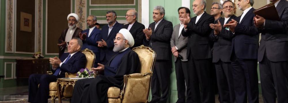 Central Bank of Iran and the National Bank of Kazakhstan signed an agreement on Monday, during President Nursultan Nazarbayev’s visit to Tehran, to expand banking relations. The agreement will enhance supervisory affairs and information exchange between the two sides.