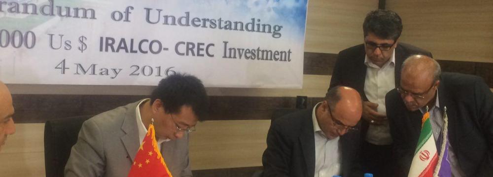 Iranian Aluminum Company (Iralco) signed an investment agreement worth $2 billion with China Railway Group Limited in Tehran on Wednesday. “The project will be carried out in the second plant of Iralco in Kheirabad Industrial Town in Arak, the capital of Markazi Province. The plant is located near Arak International Airport and the trans-Iranian railroad,” Iralco’s managing director said in the signing ceremony, IRNA reported. Majid Pourattar also said the agreement includes the construction of a 350,000-ton smelter, one 500 MW power station and an anode project. “Kheirabad Industrial Town is expected to become a special economic zone in the not-too-distant future,” he said. Iralco is the first producer of aluminum in Iran. The plant was inaugurated in Arak in 1972. Its production stood at 180,000 tons in the last Iranian year (ended March 19, 2016), registering an over 9% growth compared to a year before.