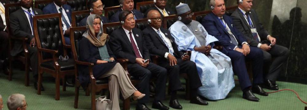 Federica Mogherini, the EU’s highest ranking diplomat, was accompanied at the Iranian presidential ceremony by French Foreign Minister Jean-Yves Le Drian and Germany’s Minister of State Michael Roth. Also in attendance were ministers and dignitaries from Austria, Britain, Denmark, Italy and the Netherlands, as well as many other non-European countries.