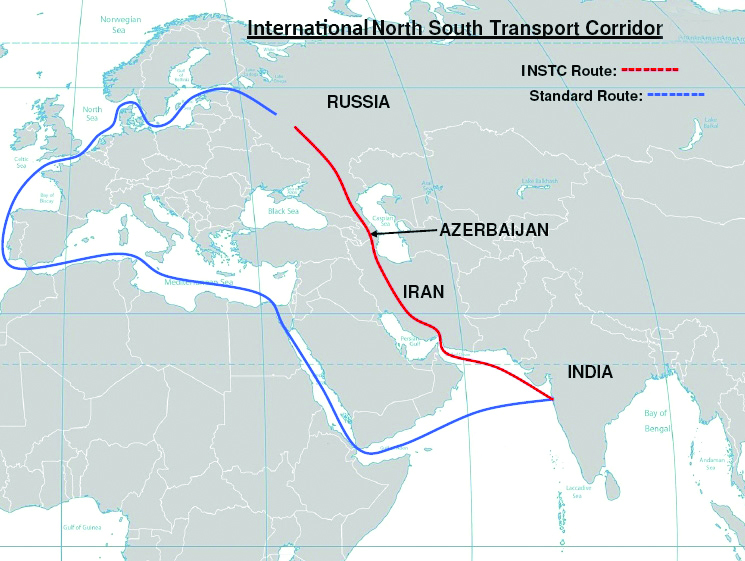 The two countries have stepped up cooperation in the past few years to develop infrastructures to activate the International North-South Transport Corridor, an international logistics route from India to Europe passing through Iran, Azerbaijan and Russia.